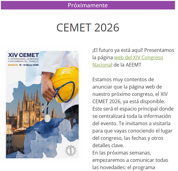 Organiza Colaboran ¡La Asociación de Especialistas en Medicina del Trabajo te invita este próximo 13 de noviembre de 2025 a acompañarnos al inicio de una serie de webinars bajo el [...]