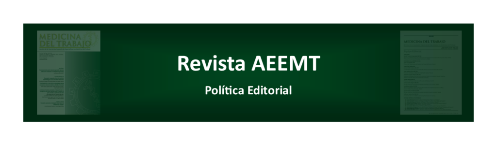 La Revista de la Asociación Española de Especialistas en Medicina del Trabajo publica trabajos del tipo originales, casos clínicos, artículos de revisión, editoriales, protocolos, documentos de consenso, cartas ala directora y otros artículos especiales referentes a todos los aspectos de la Medicina del Trabajo.
